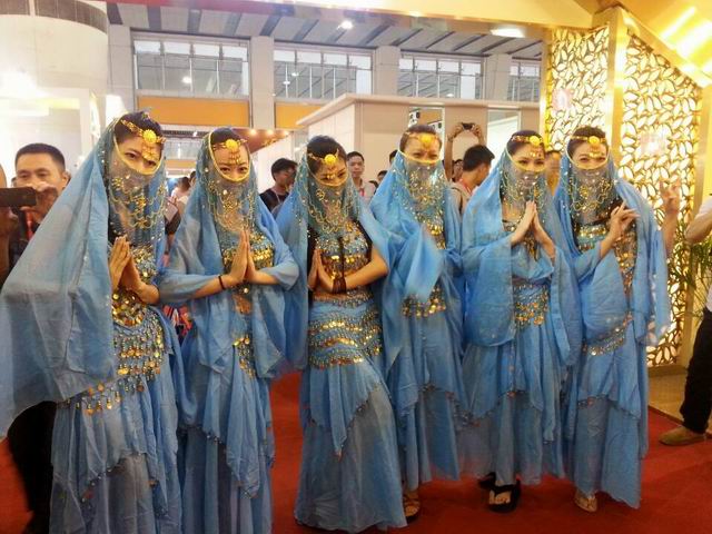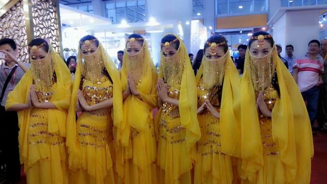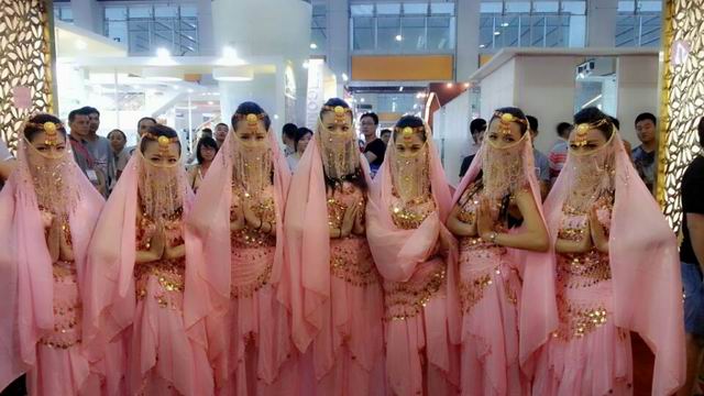 本次展場內,客戶聘請了26名廣州若花禮儀公司的禮儀小姐,身穿印度風情服裝。
