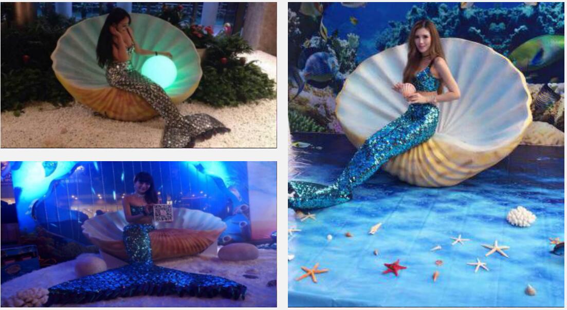 傳說(shuō)美人魚以腰部為界,上半身是美麗的女人,下半身是披著鱗片的漂亮魚尾,整個(gè)軀體既富有誘惑力。若花禮儀貝殼展示主要包括大貝殼、毛毯、美人魚及小貝殼等